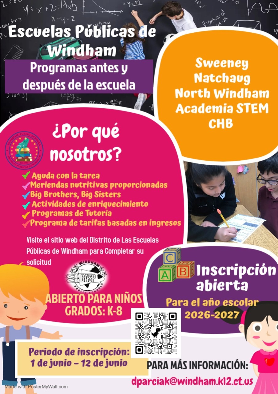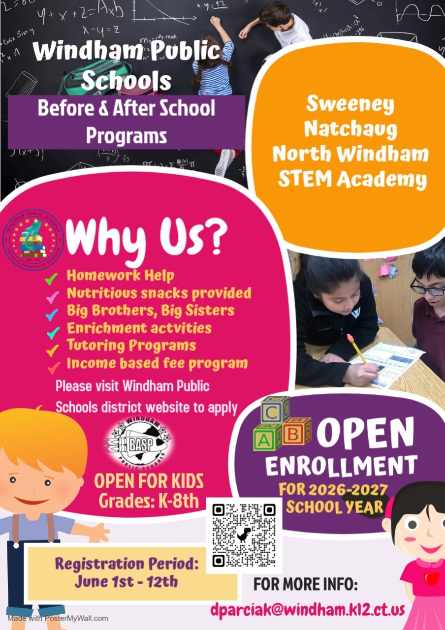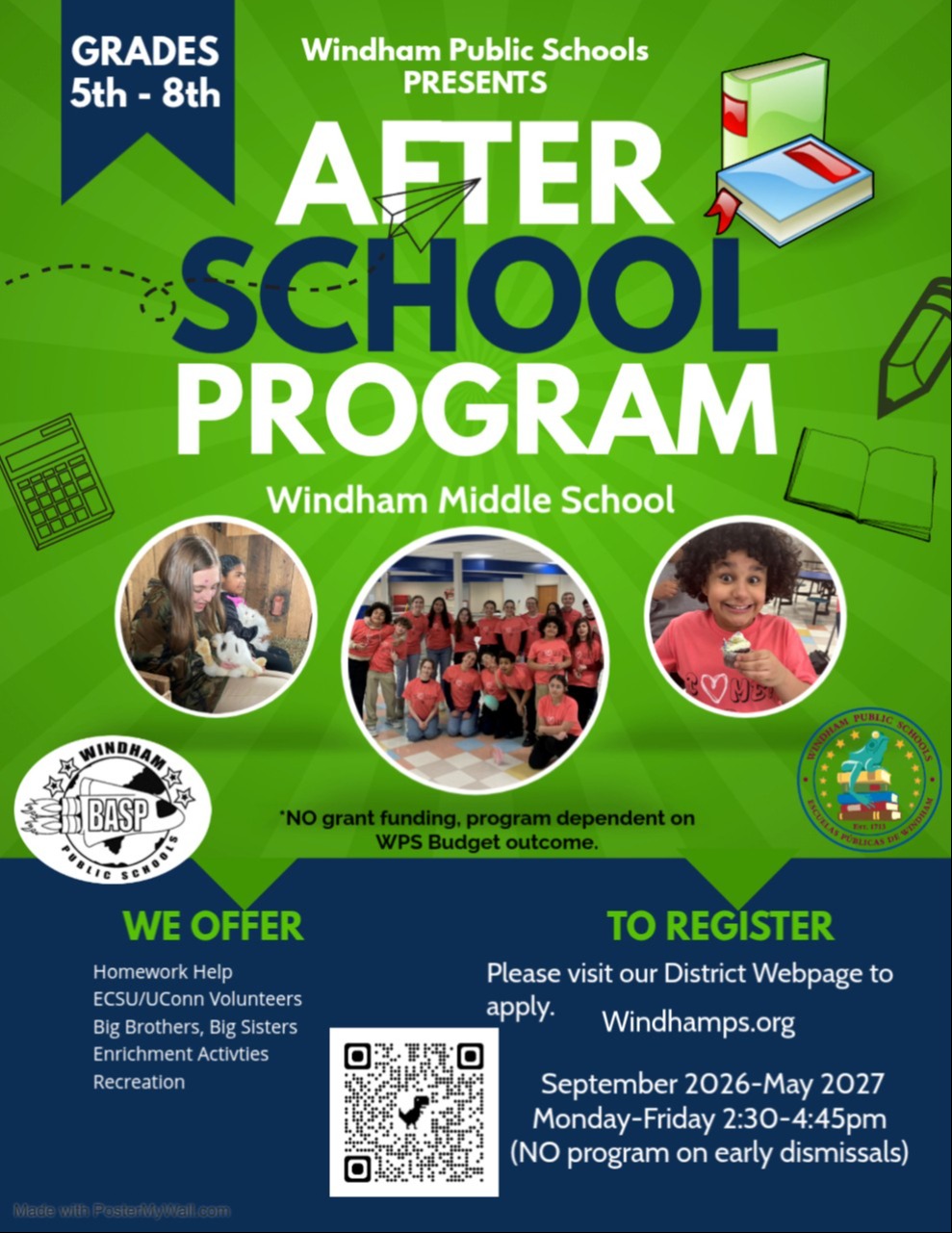 For some students, before and after-school programming can give extra resources needed to achieve excellence. Windham Public Schools' before and after school programs provide extra tutoring, homework assistance, access to books and technology, as well as opportunities to explore extra-curricular activities that expand students interests in the arts, music and physical activity.